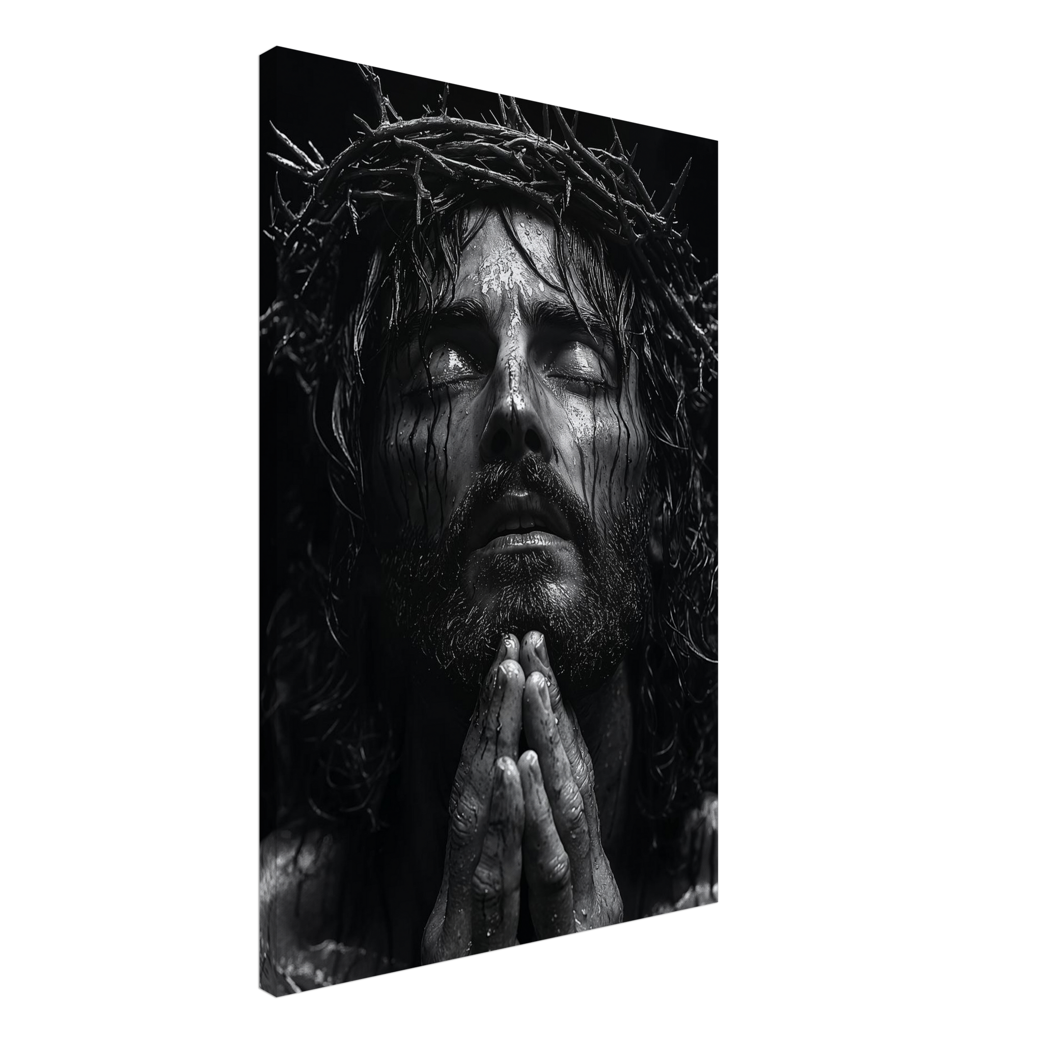 Hands drawn together, eyes closed, the body bears the full weight of what is coming. There is no relief in this moment—only clarity. The suffering is known. The cost is accepted. And still, the prayer continues.
